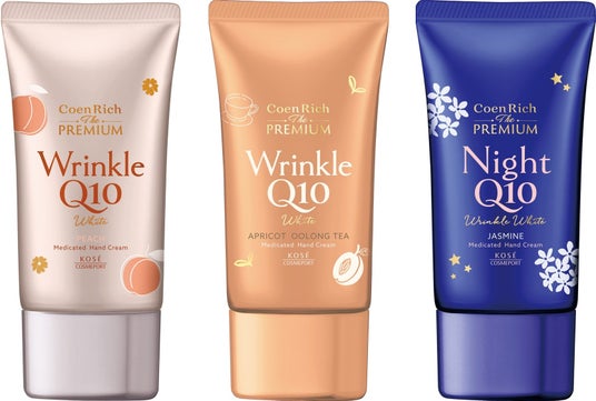 コーセーコスメポート株式会社(本社:東京都中央区、代表取締役社長:小林 孝雄)は、高機能ハンドケアシリーズ『コエンリッチ ザ プレミアム』より、「薬用リンクルホワイト ハンドクリーム 蜜桃の香り」、「薬用リンクルホワイト ハンドクリーム アプリコットウーロンティの香り」と「薬用リンクルナイト ハンドクリーム ジャスミンドリームの香り」(3品目3品種、ノープリントプライス)を2025年8月1日より全国の量販店・ドラッグストアを中心に数量限定で発売します。