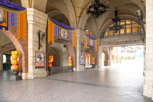 ワールドバザールのメインストリートでは妖しげな茨があしらわれたり、ミッキーマウスをイメージしたカボチャのフォトスポットが設置されます。シンデレラ城周辺にはヴィランズが描かれたバナーが掲げられ、 ヴィランズをイメージしたゴーストたちがハロウィーンを楽しんでいる様子を表現したデコレーションも登場します。