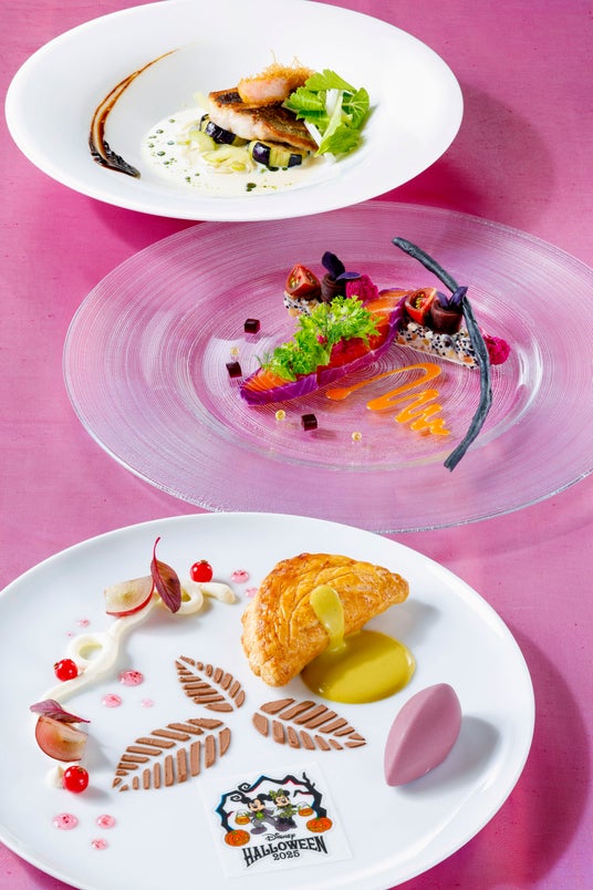 ディズニーアンバサダー(R)ホテル、東京ディズニーシー・ホテルミラコスタ(R)、東京ディズニーランドホテルのレストランでは、ゴーストなどのモチーフをあしらった、楽しくも妖しい「ディズニー・ハロウィーン」の雰囲気を感じられるスペシャルメニューが登場します。秋ならではの食材を取り入れ、ハロウィーンらしい遊び心が感じられるメニューをお召し上がりいただけます。なお、ディズニーアンバサダーホテルの一部のメニューには、オリジナルチャームやオリジナルコースターが付いています。