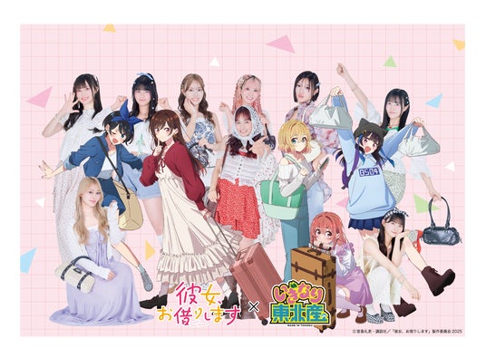 TVアニメ『彼女、お借りします 4期』では、主人公の木ノ下和也が家族旅行で福島県の「スパリゾートハワイアンズ」を訪れるエピソードがあり、ヒロインたちも同行するなど、福島県のハワイアンズを舞台に物語が大きく動き出します。この度、原作でも人気の福島「ハワイアンズ編」を更に盛り上げるために、東北地方を中心に活躍するアイドルグループ「いぎなり東北産」とのコラボレーションが決定! 本コラボレーションでは、「ヒロインたちとメンバーたちが一緒にハワイアンズにお出かけする」といったコンセプトで撮影した撮り下ろし写真を使用した、オリジナルコラボグッズが展開中です。ご購入いただいたグッズと一緒に、アニメの世界をより一層お楽しみいただけること間違いなし!是非チェックしてみてください!