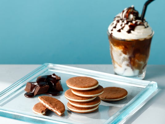 看板商品の「サンドクッキー」は、まるでショコララテのような味わいが広がる人気商品。コーヒーを効かせたクッキー生地でホワイトミルクのチョコレートをサンドした、サクッとした食感が特徴の癒しのスイーツです。チョコレートの濃厚な甘さとミルクのクリーミーな味わいのハーモニーをおたのしみください。