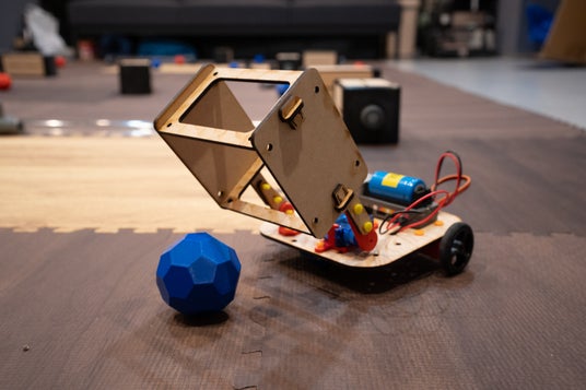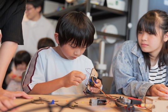 子どもたちのロボット制作体験。自分でつくったロボットで戦う。