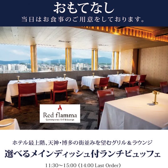 - おもてなし:ソラリア西鉄ホテル福岡17階グリル&ラウンジ「レッドフランマ」