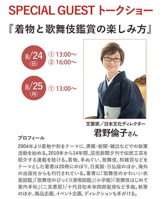- 特別企画:トークショー「着物と歌舞伎鑑賞の楽しみ方」君野倫子氏(文筆家・日本文化ディレクター)