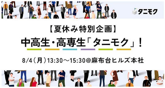 パーソルキャリア株式会社(本社:東京都港区、代表取締役社長:瀬野尾 裕)が運営する、他人に目標をたててもらうワークショップ「タニモク」は、2025年8月4日(月)に、中学生・高校生・高等専門学校生を対象とした夏休み特別企画を開催いたします。