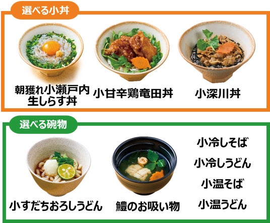 選べる小丼・椀物、3種の小鉢がセットになった、瀬戸内の恵みを堪能できる夏にぴったりな御膳です。朝獲れの生しらす丼やすだちおろしうどん、瀬戸内産の鱧・上海老・大葉の天ぷらにも徳島県産すだちを絞ってさっぱりとお召し上がりいただけます。自家製おぼろ豆富を使用したサラダなど、小鉢も夏らしいラインアップです。