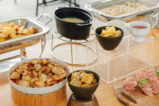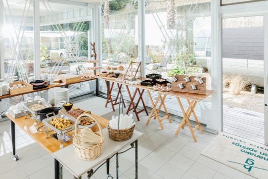 今回ビュッフェの舞台は、グランピング施設「浜名湖パームスプリングス by les quatre saisons」の中央に設えたカフェ棟。