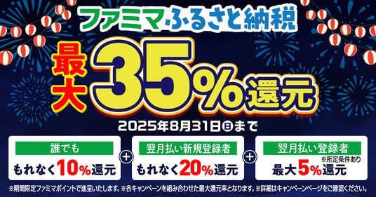 ファミマふるさと納税のご利用で寄附金額の最大35%還元キャンペーンを実施中!