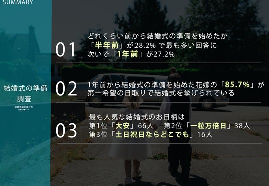 このような完璧な日取りを確実に押さえるためには、今回の調査結果が示すように、1年前からの準備開始が成功へのカギとなるでしょう。