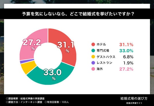 ・専門式場33.0%、ホテル31.1%、海外27.2%と僅差、現代花嫁の価値観多様化が明確に