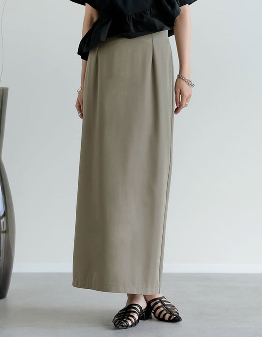 接触冷感ツイル素材を使用した、シンプルな美シルエットのツイルタイトスカート。