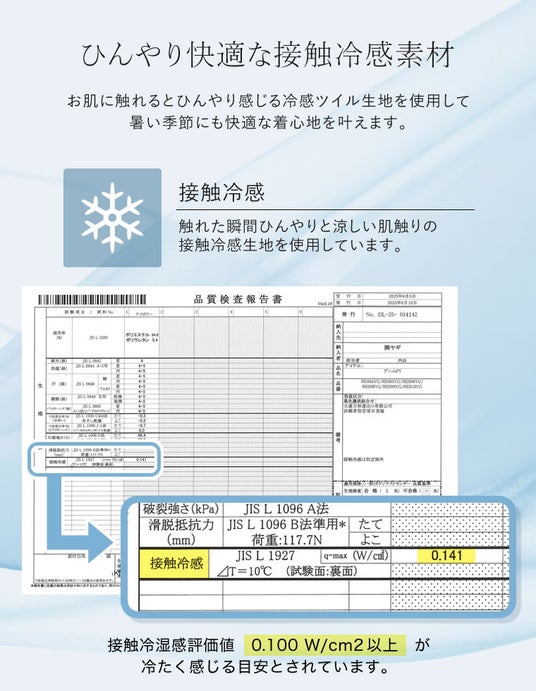 この時期にぴったりの接触冷感素材で、夏も涼しく快適な着心地を叶えます。