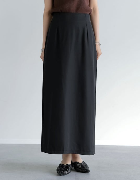 ヒップラインを拾いにくい上品なナローシルエットで、自然に体型カバーも叶えます。