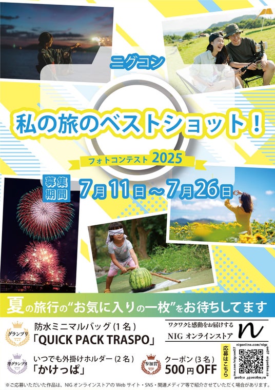 ありそうでなかった製品を通してワクワクと感動をお届けするを運営する合同会社NIG(本社:茨城県石岡市、代表:佐々木 亮人、以下NIG)が運営するNIGオンラインストアは、旅好きユーザーと一緒に作る参加型コンテスト「ニグコン」第2弾として、フォトコンテスト『私の旅のベストショット!』を2025年7月11日より開催いたします。