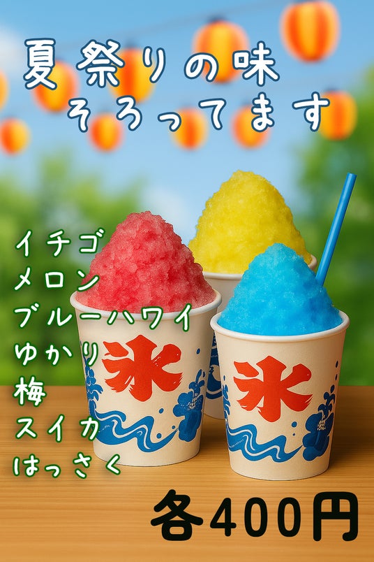子どもの頃に食べた、あの屋台の味をもう一度。夏の風物詩とも言える定番フレーバー7種を、すべてテイクアウト400円でご用意しました。
