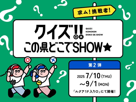 音声をヒントに都道府県を当てる体験型イベント「クイズ!!この県どこでSHOW★」の第2弾を開催いたします。本イベントでは、会場に設置されたヘッドホンから流れる音声を手がかりに、どの県かを当てていただきます。音声には、各県で活躍するラジオパーソナリティが登場し、自慢の観光スポットやご当地グルメなど、その県の魅力をたっぷりとご紹介いたします。