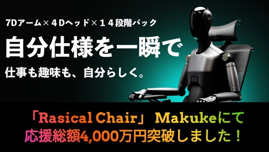 Rasical Japan(ラシカルジャパン)合同会社(本社:京都市下京区、代表社員:眞田 到) は、クラウドファンディングサイト「Makuake」にて開始した「Rasical Chair」が4,000万円を突破しました。
