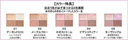 ◇異なる質感・処方が特徴の4色<コントロールカラー>・<透け感血色カラー>・<ふわ締めカラー>・<うるきらラメ>が入ったパレット。