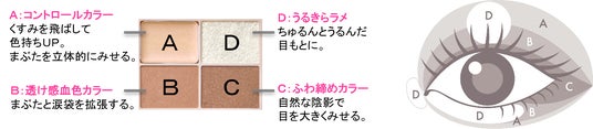 異なる質感と処方で、簡単に大きな目もとに仕上げるパレット設計