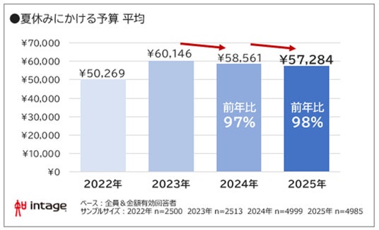 夏休み予算は平均57,284円。猛暑・物価高で2年連続微減