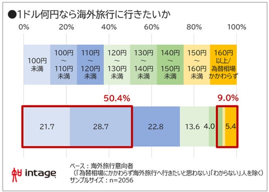 ・海外旅行意向者の半数は1ドル「100円未満」「110円未満」を希望。最近の為替相場との開き大きく