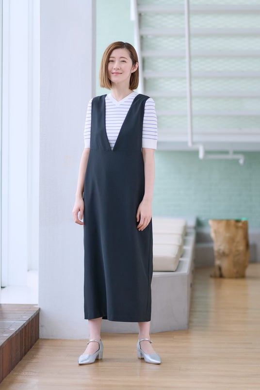 昨今では、手ごろな価格帯でさまざまなシーンで使い回しができる「コスパ」や、朝の忙しい時間帯に簡単にコーディネートできる「タイパ」、限られた空間を効率的に活用したい「スぺパ」などのキーワードでアイテム検索することが増えてきています。昨年の秋に洋服の青山で展開をスタートした「ビジパシリーズ」は、時代のニーズにマッチした打ち出しをすることで一部商品が品薄になるなど、大きな反響をいただきました。今回は3つのキーワードに加えて、長期化する夏をテーマに「ジャンパースカート&ブラウス」セットを企画し、WEB限定で発売しています。