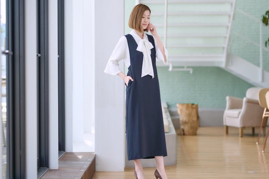 ジャンパースカートは、インナーウエアを変えるだけでコーディネートを楽しめるアイテムとして2023年より注目を集めています。本企画は、ビジネスでも使いやすいスッキリとしたロング丈のデザインにしている他、フロントのVカラーを深めに設計をしました。セットのブラウスはもちろんのこと、シンプルなインナーできちんと感やギャザー、フリルのインナーで華やかな印象を与えることができるなど、お手元にあるアイテムでもコーディネートを気軽に楽しむことができます。その他、マシンウォッシャブルや吸水速乾、UVカット、接触冷感など夏場に嬉しい機能も備えた万能アイテムとなっています。