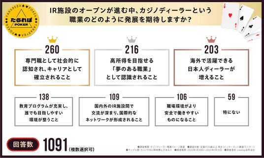 最後に、カジノディーラーという職業の発展性について(複数回答で)聞きました。