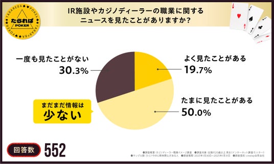 それでは大阪IRの情報を含め、そこで働くカジノディーラーなどの職業としての情報やニュースはどのくらいの人が見聞きしたことがあるのかアンケート調査を行いました。