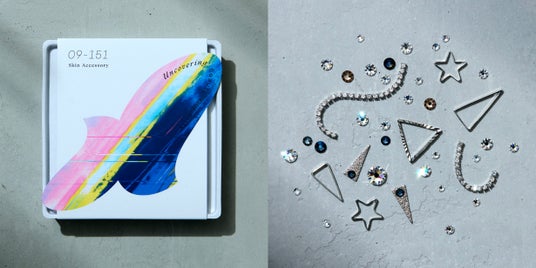 2018年、資生堂は米国ベンチャーOlivo Laboratories社の特許技術「Second Skin」を取得し、資生堂の強みである処方開発技術と組み合わせて、その機能性を進化させてきました※2。「Second Skin」技術は肌と一体化し凹凸を補正する人工皮ふを肌上に形成し、これまでの化粧品の枠を超え、目袋やたるみを短時間で目立たなくすることを可能にしました。「Second Skin」技術の特長である肌と一体化させる人工皮ふの技術を応用することで、アクセサリーパーツは肌に固定され、従来のメイクによる表現を進化させた、デコラティブで多様な表現が可能です。伸縮性・密着性により、剥がれにくさと剥がしやすさを両立するとともに、通気性により肌へのやさしさや心地よさも同時に実現しております。