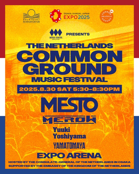 オランダ王国はダンスミュージック分野における産業やフェスティバル文化の発信地として、グローバルなカルチャーを牽引してきました。本万博でのオランダパビリオンのテーマである『コモングラウンド』(共に分かち合い、新しい価値を生み出すこと)に基づき、本イベントでは、世界屈指のダンスミュージック大国・オランダと日本や開催地である大阪との共鳴、文化の融合を目指し、万博に訪れた世界中の参加者と共に多様性を受け入れ、共に未来を築くというコンセプトを体現して参ります。