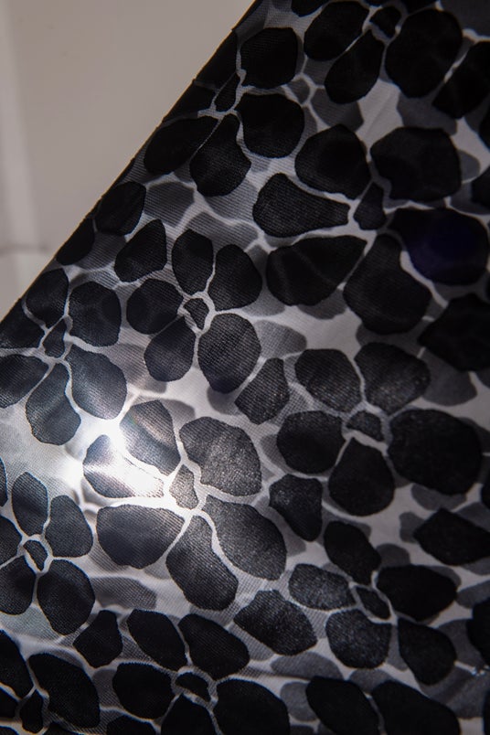柄の輪郭を残しつつ、地を抜く独自の加工により、模様の繊細さが際立ち、素材本来の軽やかさと、ほのかな光沢が引き立ちます。