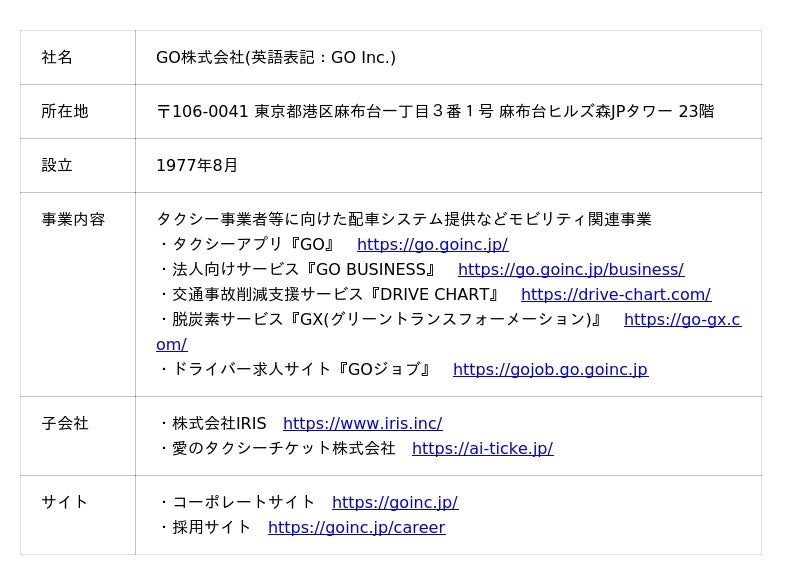GO株式会社は、「移動で人を幸せに。」をミッションに掲げ、モビリティ領域を軸とする多様な事業・サービスを展開しています。協働パートナーの皆さまとの共創力と、テクノロジーを最大限に活用する開発体制のもと、時代に合わせた「移動」のアップデートを通じて、日本の社会課題の解決を目指します。