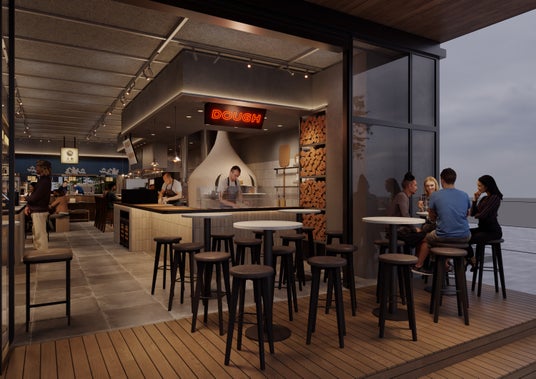 イタリアから取り寄せた本格薪窯で焼くピッツェリア、ピンス(韓国かき氷)も楽しめる韓国カフェレストラン、羽釜で炊いたふっくら白米が味わえる炉ばた焼きなど、ジャンルもスタイルも異なる全8店舗を取り揃え、ランチからご褒美スイーツ、仕事帰りの一杯、空を感じながら広場で楽しむテイクアウトまで、さまざまな時間と気分に寄り添うカジュアルながらもこだわりの詰まった食体験を提供します。