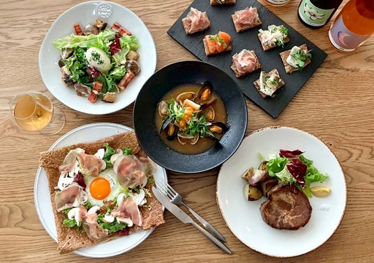 そば粉の香ばしさとパリッとした食感が楽しいガレットと、ワインに合うビストロ料理をご用意しています。TACHIHI PLACEの一番奥にある、ホッと落ち着ける空間で、リラックスしてお食事をお楽しみください。お天気のいい日はガレットのテイクアウトもおすすめです。