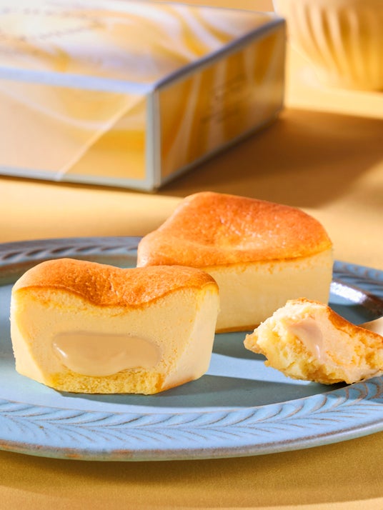 中のクリームは、チーズフォンデュソースのようにとろ~っとしイメージし、できるだけ生感覚を残したくこだわりました。マスカルポーネや生クリーム、練乳はすべて北海道産にこだわり、ミルキーで濃厚な味わいに。ふんわりしっとりとした生地は北海道産クリームチーズを使い、極めてシンプルに焼き上げました。ふわふわの食感をぎりぎりに残したベイクドチーズケーキです。
