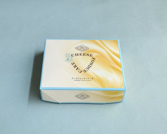 美瑛本店で大人気のチーズフォンデュケーキ。チーズのやさしい味をイメージした、新千歳空港だけのオリジナルパッケージです。