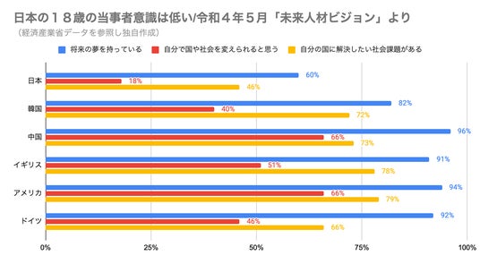 経産省データを参照し独自作成した「世界の18歳の当事者意識調査」のグラフ