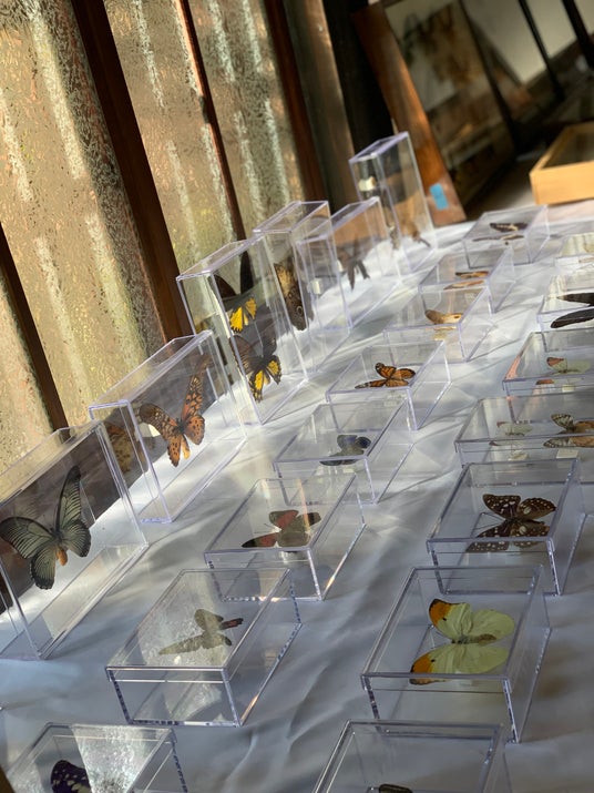 1. 蝶の標本展示・猪狩氏が蒐集した約200種、500点以上の蝶の標本を展示