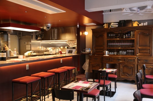 ⾚を基調としたシックな内観は、ブルゴーニュ地方のローカルなビストロをモチーフにしています。