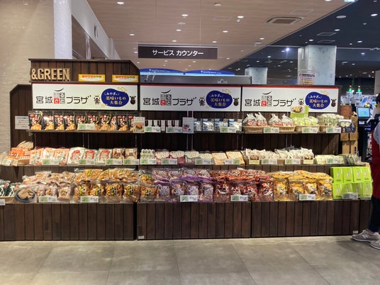 フェア開催中には、アンテナショップ「宮城ふるさとプラザ」出店のほか、店内には宮城県産品が多く並びました。また、セレモニー終了後には来店していただいた方への先着オリジナルノベルティ配布が行われました。