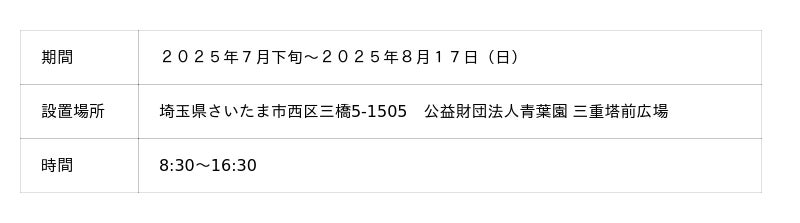 青葉園は、三重塔前の木枠回廊にて、季節ごとに様々な装飾を施しており、さいたま市の隠れた散歩コース・観光スポットとなっております。7月から8月中旬までの期間は、回廊を『クリアボール』で飾り付けして、皆さまをお出迎えします。