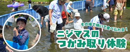 ニジマスのつかみ取り体験