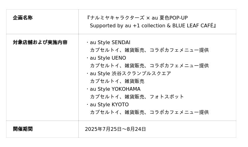 本イベントの詳細は、特設サイト(https://www.au.com/mobile/product/plus-one/narumiya_characters_popup/)をご参照ください。