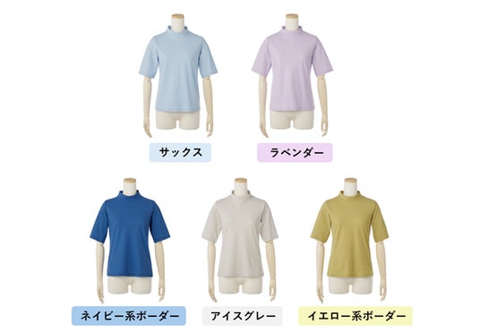 大人気の『涼感五分袖ハイネック』に、2025年の新色「ラベンダー」と「サックス」の2色が登場いたしました。「サックス」は見た目にも涼やかで、夏に映えるカラー。「ラベンダー」はラフな印象になりすぎず、上品に着ていただけます。