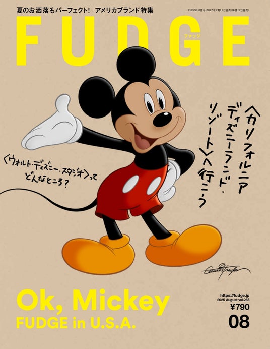 『FUDGE』株式会社 三栄が発行する女性ファッション誌『FUDGE(ファッジ)』は、2002年に創刊し、2022年に20周年を迎えました。7/11発売の8月号は、「OK,Mickey FUDGE in U.S.A」特集となっています。