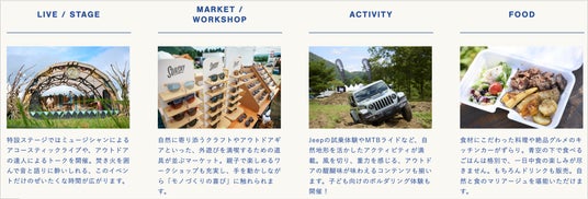 また、Jeepオーナー向けキャンプイベント「Camp Jeep」との共催により、Feel EARTH会場内では、オフロードコースでのJeep試乗体験など、Jeepならではの特別コンテンツも展開予定です。アウトドアとクルマの魅力がクロスする2日間をお楽しみいただけます。