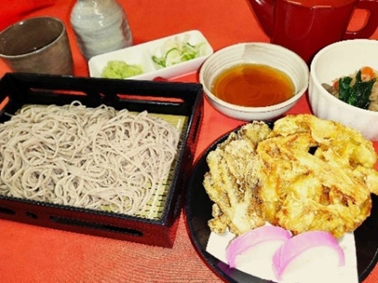 ◇満天手打ちそば(1,700円)信州名産の手打ち二八そばに、揚げたての舞茸天とかき揚げを添えた、贅沢な一品です。
