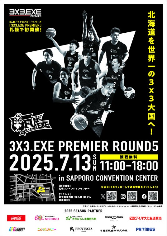 2025年7月13日(日)札幌コンベンションセンターにて開催される「3x3.EXE PREMIER 2025 ROUND5 presented by 学校法人西野学園」の追加コンテンツが決定!
