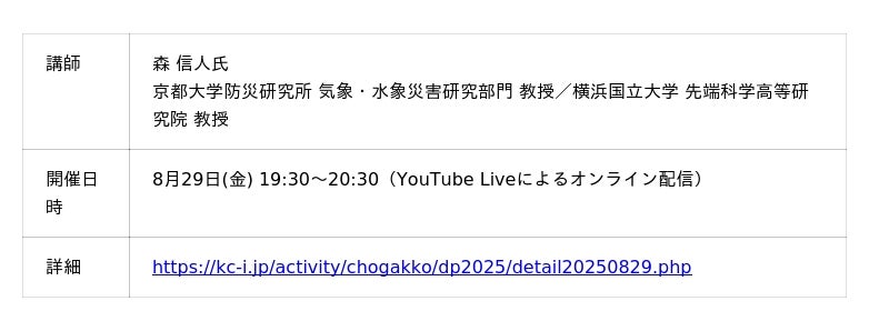 「災害と向き合う-減災・防災を学ぶ-」は全8回の連続講座 (単発受講可)